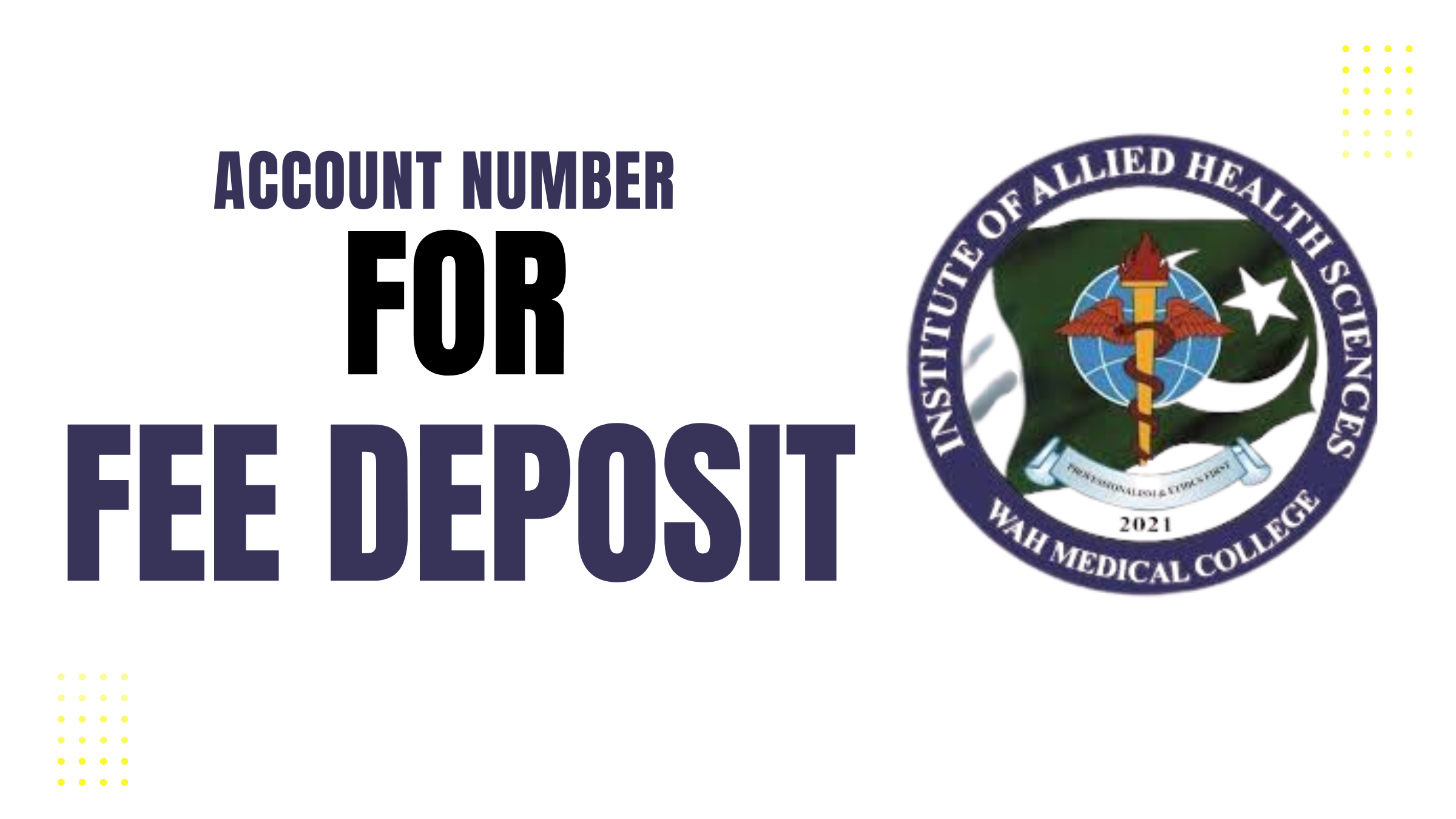 INSTITUTE OF ALLIED HEALTH SCIECES, WAH MEDICAL COLLEGE BANK TITLE: BANK ALFALAH A/C No: 0990-1008036219 IBAN: PK27ALFH0990001008036219 Deposit your fee in above mentioned account before due date and share your…